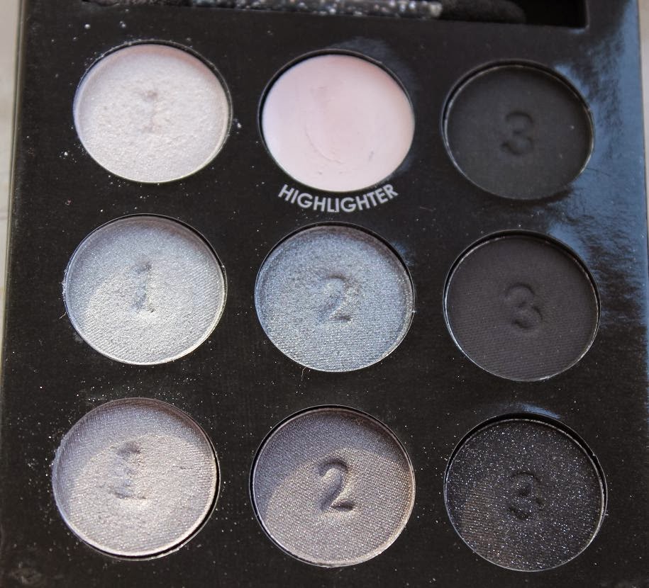 Pierwszym z nich jest paletka cieni do smokey-eye: zawiera w sobie cienie matowe, perłowe i jeden z drobinkami brokatu + rozświetlacz. Jest świetnie napigmentowana a konsystencja cieni zachwycająca 🙂 rewelacyjnie pracują na powiece! Zamknięte są w tekturowym pudełeczku z magnetycznym zamknięciem.