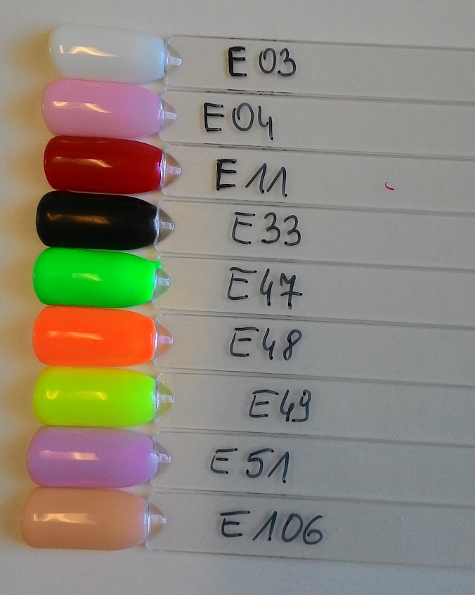 Idealne krycie przy dwóch warstwach, nieco rzadsze od Semilaca, mają niezrównaną czerń i biel- bez problemu i jeden i drugi kolor można utwardzić w lampie zarówno UV jak i LED.