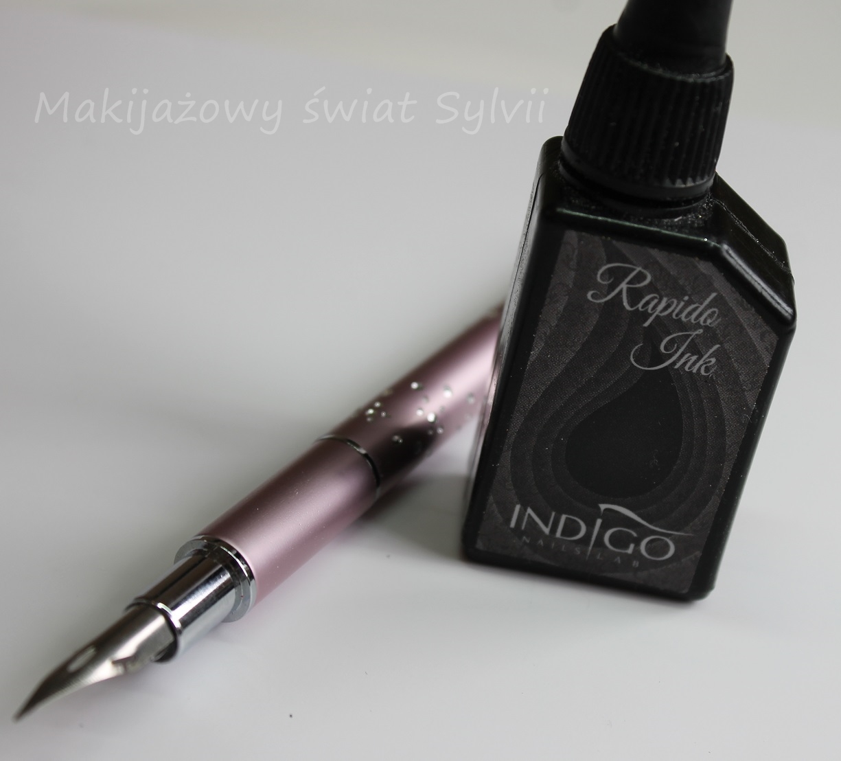 – będziemy potrzebować też tuszu, bo bez niego ani rusz! Mój jest z Indigo. Muszę Wam powiedzieć, że bardzo polecam!! 🙂 kosztuje ok. 7 zł. Jest czarny jak noc, wysycha szybko, ale na tyle ze spokonie pozwala na pracę. Jest mega wydajny!