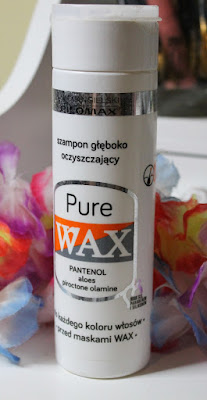 Pierwszą częścią zestawu do pielęgnacji był szampon głęboko oczyszczający z pantenolem i aloesem. Używałam go przeważnie dwa razy w tygodniu, aby dobrze oczyścić włosy. W pierwszym etapie myłam włosem zwykłym szamponem, później dopiero Waxowym cudeńkiem.